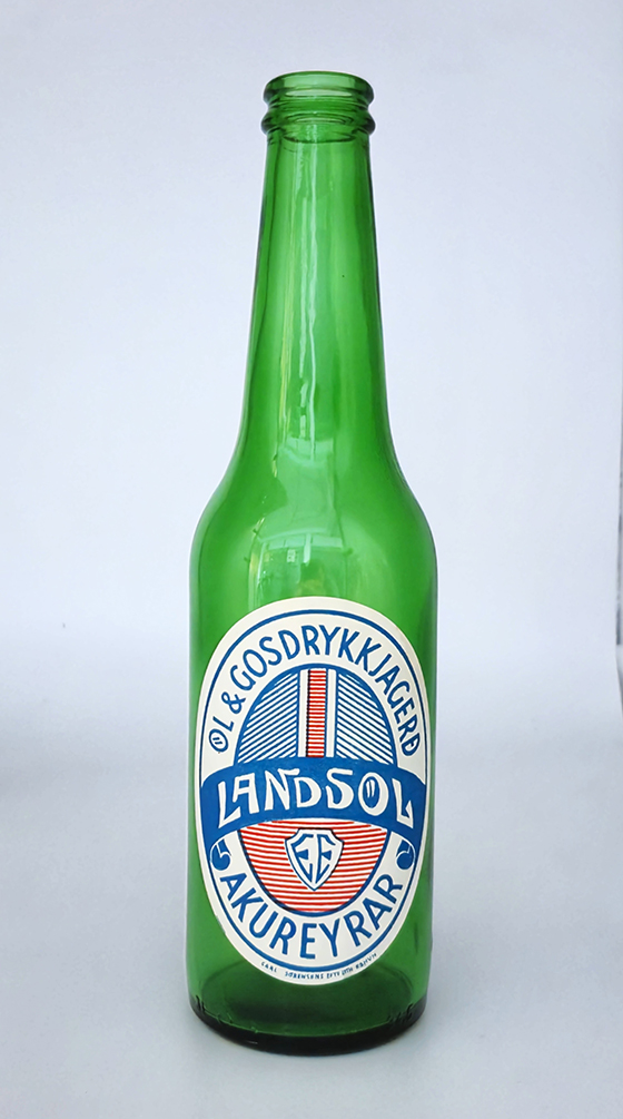Eggert bauð upp á ýmsar tegundir af öli og þótti sumt heldur sterkara en þáverandi áfengislög gerðu ráð fyrir. Hér er flaska af landsöli með miða frá Öl- og gosdrykkjagerð Akureyrar. Einnig má á miðanum lesa fangamark Eggerts, EE.