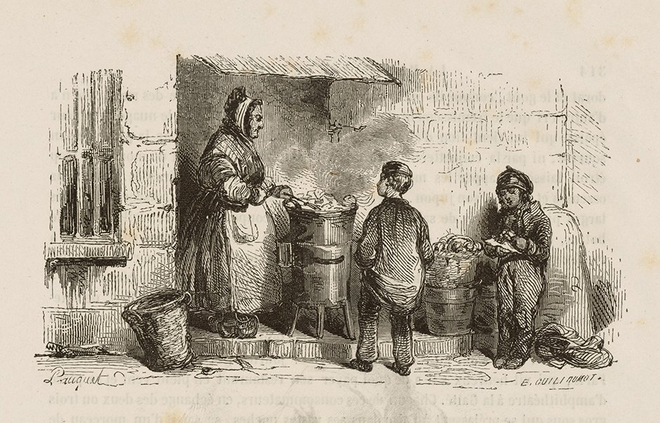 Frá Lille flutti hún sig suður á bóginn til Parísar og varð þar alþýðumatur við Pont-Neuf-brúna. Brúin sem vígð var árið 1607, varð snemma sérkennilegur heimur götulífs: “le grand théâtre du peuple” – „stóra leiksvið þjóðarinnar“ – þar sem alls kyns sölumenn kepptust um athygli vegfarenda. Á átjándu og nítjándu öld bættust þar við sölumenn sem buðu upp á einfaldan, heitan og ódýran mat með söng og spaugi. Þeir urðu hluti af daglegu lífi borgarinnar og seldu mat sem hægt var að borða á ferðinni. Þetta var fyrsti alþýðumatur Parísar og þar með upphaf „street food“ menningar Evrópu. Þar átti sú franska heima næstu árin.
