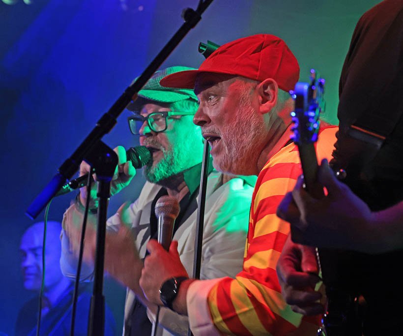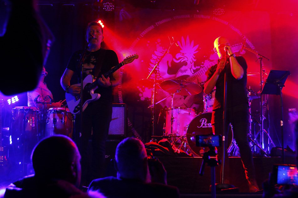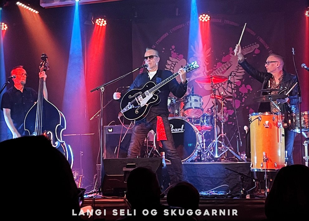 Logi Einarsson, menningar-, nýsköpunar- og háskólaráðherra, söng og dansaði með félögum sínum í Skriðjöklum á Eyrarrokki um síðustu helgi; Karl Örvarsson, til vinstri, leysti söngvarann Ragnar Gunnarsson – Ragga Sót – af að þessu sinni. Mynd: Skapti Hallgrímsson