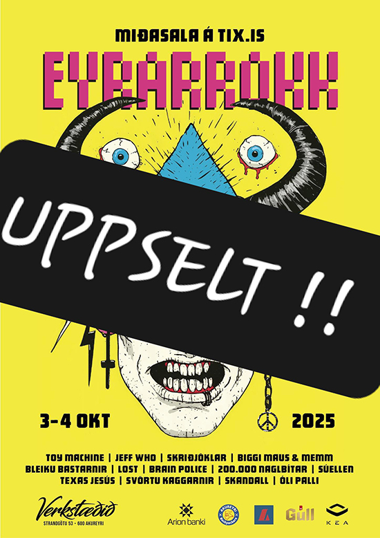 Einhvern veginn tókst forsprökkum Eyrarrokks að sannfæra meðlimi Texas Jesús um að koma saman á ný - en sú hljómsveit hefur legið lengi í dvala. Formlegir lokatónleikar voru haldnir árið 1996 en sveitin kom reyndar saman aftur árið 2008. Texas Jesús hitaði upp fyrir Eyrarrokk með tónleikum í Reykjavík fyrr í vikunni og viðtökurnar voru vægast sagt stórfenglegar. Það verður tilhlökkunarefni fyrir þau 200 sem voru svo heppin að næla sér í helgarpassa á Eyrarrokkið að meðtaka og upplifa teiknimyndapönk Texas Jesús.