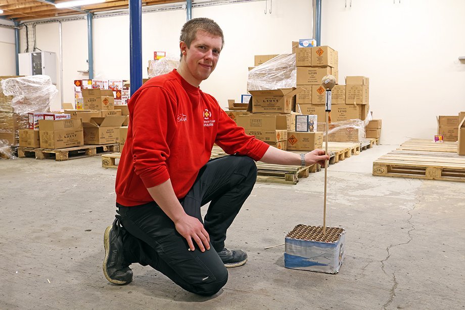 Þótt terturnar, eða skotkökurnar, njóti vaxandi vinsælda leikur blaðamanni forvitni á að vita hvernig farið er að því að skjóta upp hefðbundnum rakettum þegar ekki er hægt að stinga þeim í næsta snjóskafl og kveikja í. Tumi kann auðvitað ráð við því.