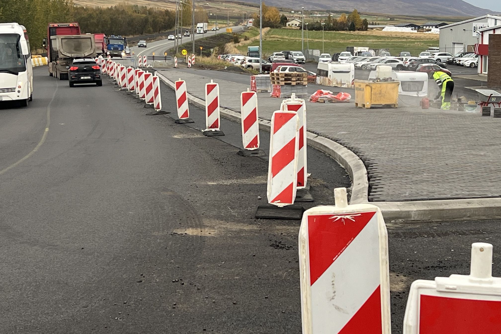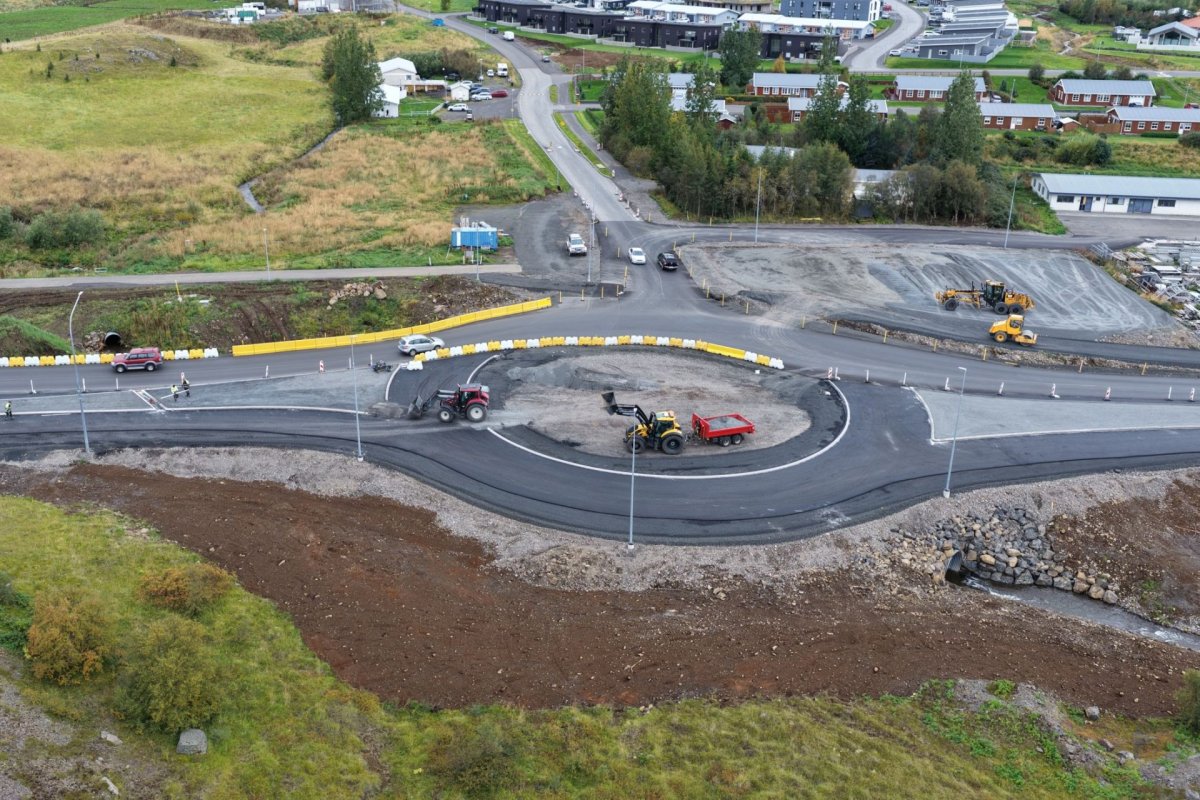 En nú sér fyrir endann á verkinu, umferð verður brátt hleypt á fullgert hringtorgið og lokafrágangur kringum það á að klárast fyrir októberlok. Þar með verða þessi fjölförnu gatnamót orðin mun öruggari, ekki síst fyrir ört stækkandi íbúabyggð í Hörgársveit.