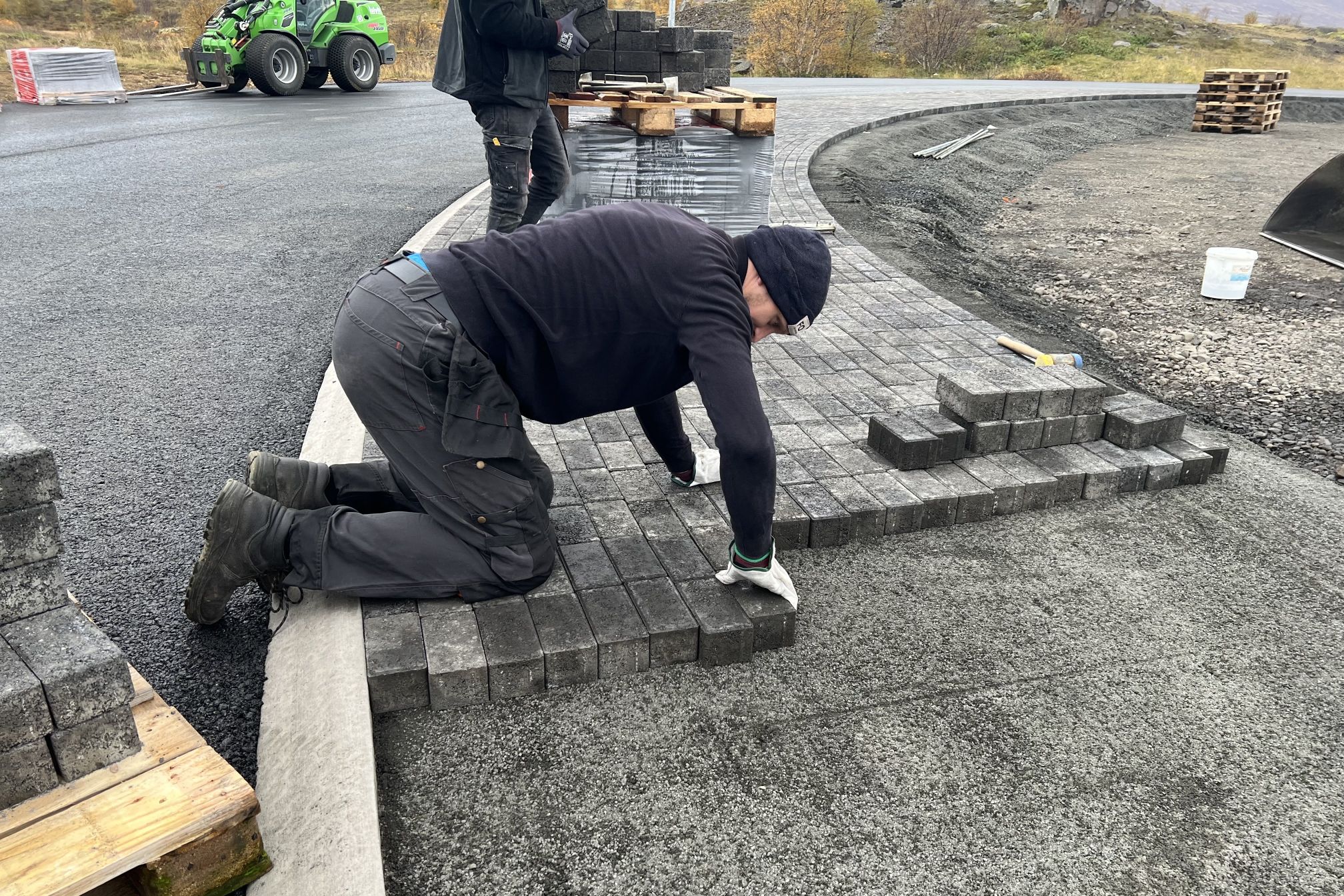 Unnið er að lokafrágangi við nýja hringtorgið, vegtengingar og gönguleiðir.