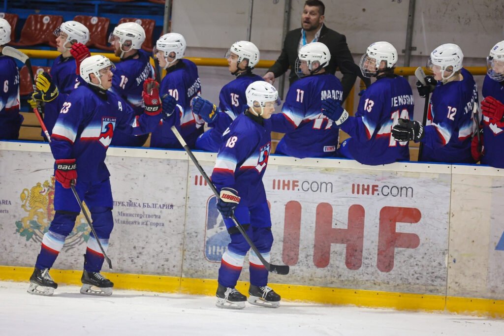 Liðið hefur unnið þrjá fyrstu leiki sína og er í efsta sætinu með níu stig, næsta lið með átta. Ísland mætir Búlgaríu í dag kl. 13:30 að íslenskum tíma, en Búlgarir hafa tapað fyrstu þremur leikjum sínum. Unnar Hafberg Rúnarsson hefur skorað flest mörk Akureyringanna, fjögur. Hann skoraði þrennu í 6-5 sigri á landsliði Tævan, sem Alþjóða íshokkísambandið og Íshokkísamband Íslands rita gjarnan sem Kínverska Taipei. Þá hefur Jóhann Már Leifsson verið iðinn við stoðsendingarnar, samtals kominn með sex slíkar í fyrstu þremur leikjum liðsins.