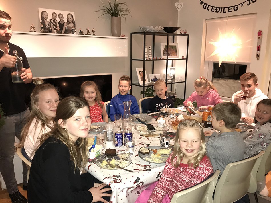 Í minni fjölskyldu gerum við allt þetta klassíska á aðventunni. Við gerum laufabrauð með móður fjölskyldunni minni, og síðan gerum við fjölskyldan samverudagatal, bökum smákökur, förum út að renna, horfum á jólamyndir og spilum meðan við hlustum á jólatónlist. Við breytum líka gróðurshúsinu okkar í jólahús með vinafólkinu okkar og drekkum heitt kakó og borðum smákökur í jólahúsinu okkar. Á Þorláksmessu borðum við skötu með vinafólki okkar sem við kynntumst á Möðruvöllum og sú hefð hefur verið í yfir 35 ár. Ég smakka smá af skötunni, en annars fæ ég mér saltfisk og meðlæti. Við förum alltaf í frekar gömlum og ljótum fötum í skötuboðið af því við lyktum svo illa eftir skötuna, og fötin fara beint í þvottavélina þegar við komum heim úr boðinu.