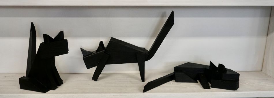 Á þessum árum sem Aðalheiður hefur opnað vinnustofu sína á aðventunni, hefur fjöldi manns nýtt sér að kaupa minni skúlptúra sem henta vel í jólapakkann. Jólakettirnir eru þó alltaf langvinsælastir. Kettina smíðar Aðalheiður fyrir hver jól úr afgöngum úr stærri verkum sem hún hefur unnið að á árinu. Hún segist safna þessum kubbum saman yfir árið og fer svo að vinna úr þeim þegar líður að jólum. „Fyrst voru kettirnir mjög einfaldir í smíði og með málað andlit. Síðan fóru þeir að verða meiri svona þrívíðari skúlptúrar. Þá hætti ég að mála andlit á þá og hef þá bara svarta því þá nýtur formið sín líka betur, en hver köttur er alltaf einstakur,“ segir Aðalheiður og upplýsir að kettirnir eigi sér marga trygga aðdáendur og sumir kaupi nýjan jólakött á hverju ári og safni þeim.