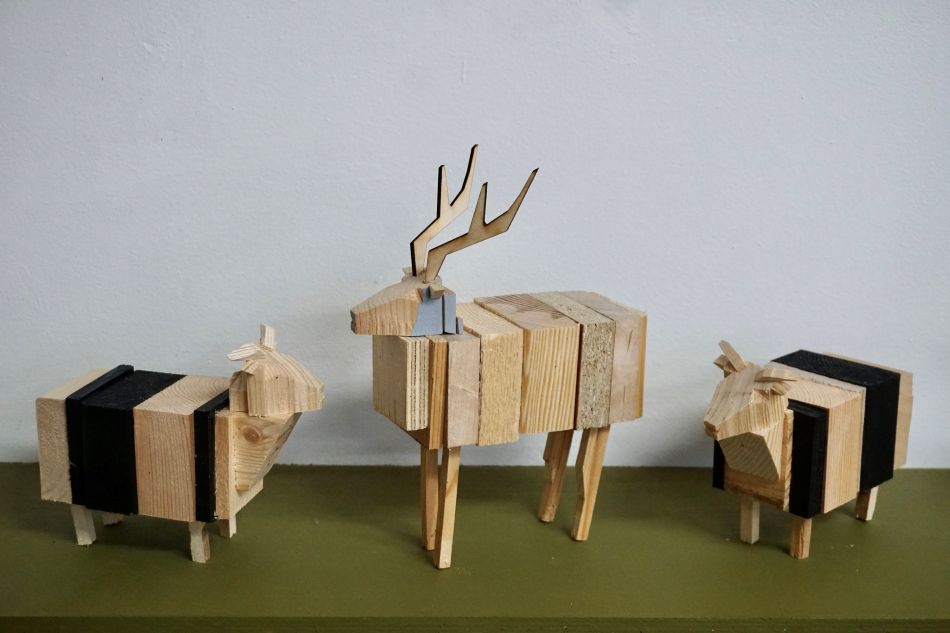 Í Freyjulundi er auk jólakettlinganna einnig að finna fjölbreytt safn smáverka af ýmsu tagi eins og fugla, kindur, álftir, hunda, fólk og fjöll. Allt sprettur þetta úr sama hráefni: „Ég nýti alltaf alla afganga,“ segir Aðalheiður og upplýsir að nýjungin í ár séu lítil hreindýr - og kannski eitthvað fleira. „Ég er bara á fullu að vinna þetta núna,“ segir hún og bætir við að hún geri einnig hrafna, ketti og lömb í raunstærð fyrir hver jól sem eru til sölu nú.