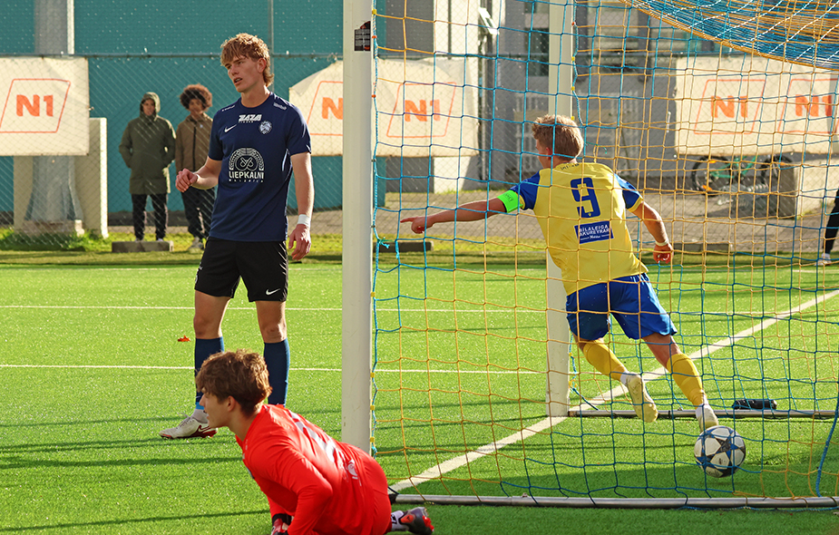 KA sigraði FK Jelgava frá Lettlandi 1:0 á heimavelli í dag í umspili Evrópudeildar unglinga í knattspyrnu. Liðin gerðu 2:2 jafntefli í fyrri leiknum í Lettlandi og KA-strákarnir eru því komnir áfram. KA mætir PAOK frá Grikklandi í tveimur leikjum í undanúrslitum umspilsins.