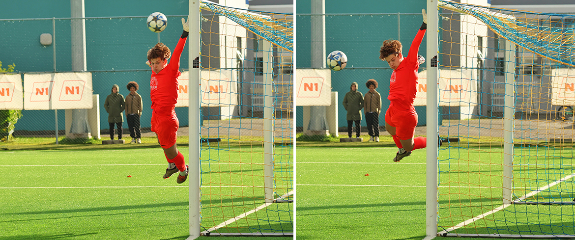 Brotið var í einum KA-manna rétt utan vítateigs. Valdimar Logi Sævarsson tók aukaspyrnuna, glæsilegt skot hans small efst í stönginni nær og boltinn hrökk þaðan út í markteiginn. Þórir Hrafn var fyrstur að átta sig, skaust fram og kom boltanum í tómt markið.