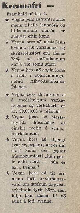 Í Íslendingi voru dregnar fram helstu ástæður þess að konur vildu taka sér frí 24. október. Íslendingur 16. október, 1975, bls. 2.