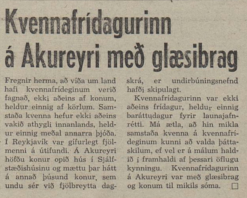 Kvennafrídagurinn á Akureyri þóttist hafa tekist með glæsibrag líkt og Dagur greindi frá nokkrum dögum síðar. Dagur, 29. október 1975, bls. 1.