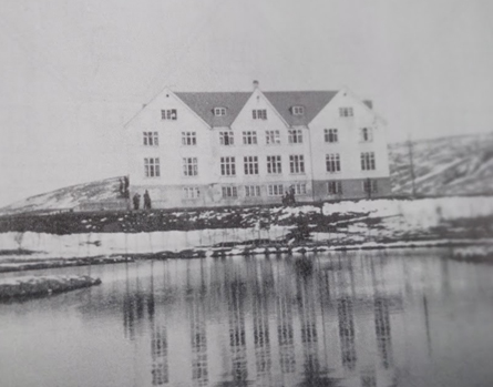 Laugarhitað hús - - þar sem mönnum þótti jafnvel nóg um hitann - - og nemendur og starfsfólk tók til við að smíða rúm, borð, stóla og skápa og koma sér fyrir.