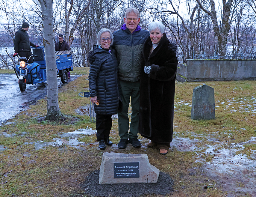 Frændsystkinin Sólveig Sigurrós Ingvadóttir, Haraldur Hauksson og Svanfríður Ingvadóttir voru viðstödd þegar steinninn var settur á leiðið. Langamma þeirra, Svanfríður Bjarnadóttir, var hálfsystir Frímanns.