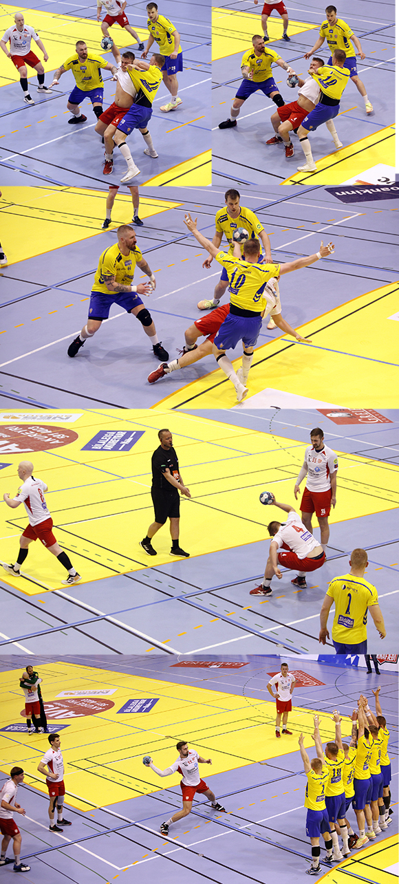 Skemmtileg myndasyrpa af umdeildu atviki á lokasekúndum leiksins í KA-heimilinu í maí 2021 sem lýst er hér neðan.