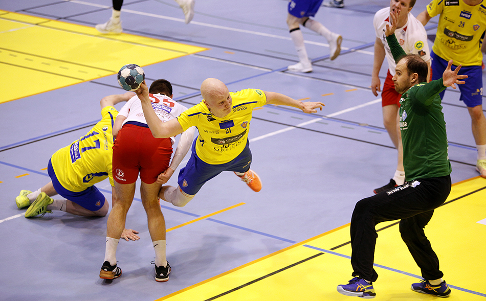 Jón Heiðar Sigurðsson, núverandi formaður handboltadeildar KA, í dauðafæri í síðasta deildarleik KA og Þórs í maí 2021. Mynd: Skapti Hallgrímsson