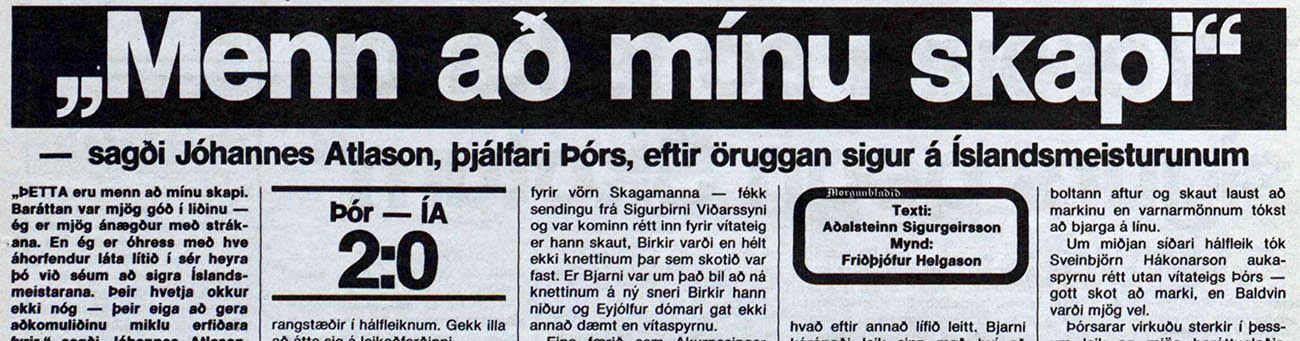„Sigur Þórs var sanngjarn – Þórsarar voru mun ákveðnari allan tímann og Skagamenn náðu ekki að sýna það spil sem einkennt hefur leik þeirra undanfarin ár. Leikur liðanna var góður af malarleik að vera og mikið um marktækifæri,“ sagði tíðindamaður blaðsins, Aðalsteinn Sigurgeirsson.