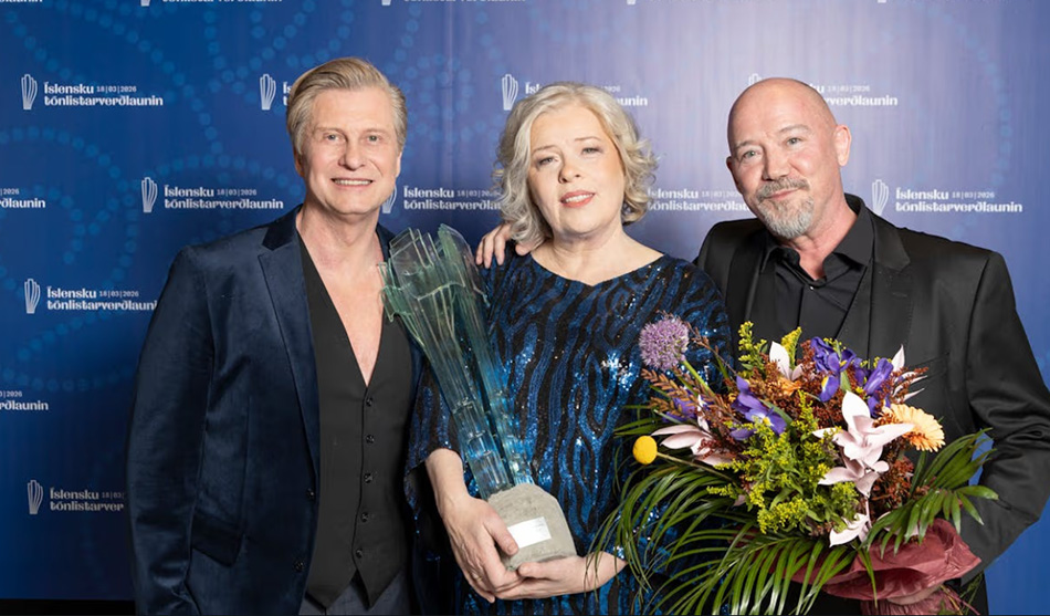 Hljómsveitin Todmobile hlaut heiðursverðlaun Íslensku tónlistarverðlaunanna í gær. Frá vinstri: Eyþór Arnalds, Andrea Gylfadóttir og Þorvaldur Bjarni Þorvaldsson. Sá síðastnefndi er tónlistarstjóri Menningarfélags Akureyrar og Andrea, sem er akureyrskrar ættar, er nú kennari við Tónlistarskólann á Akureyri.