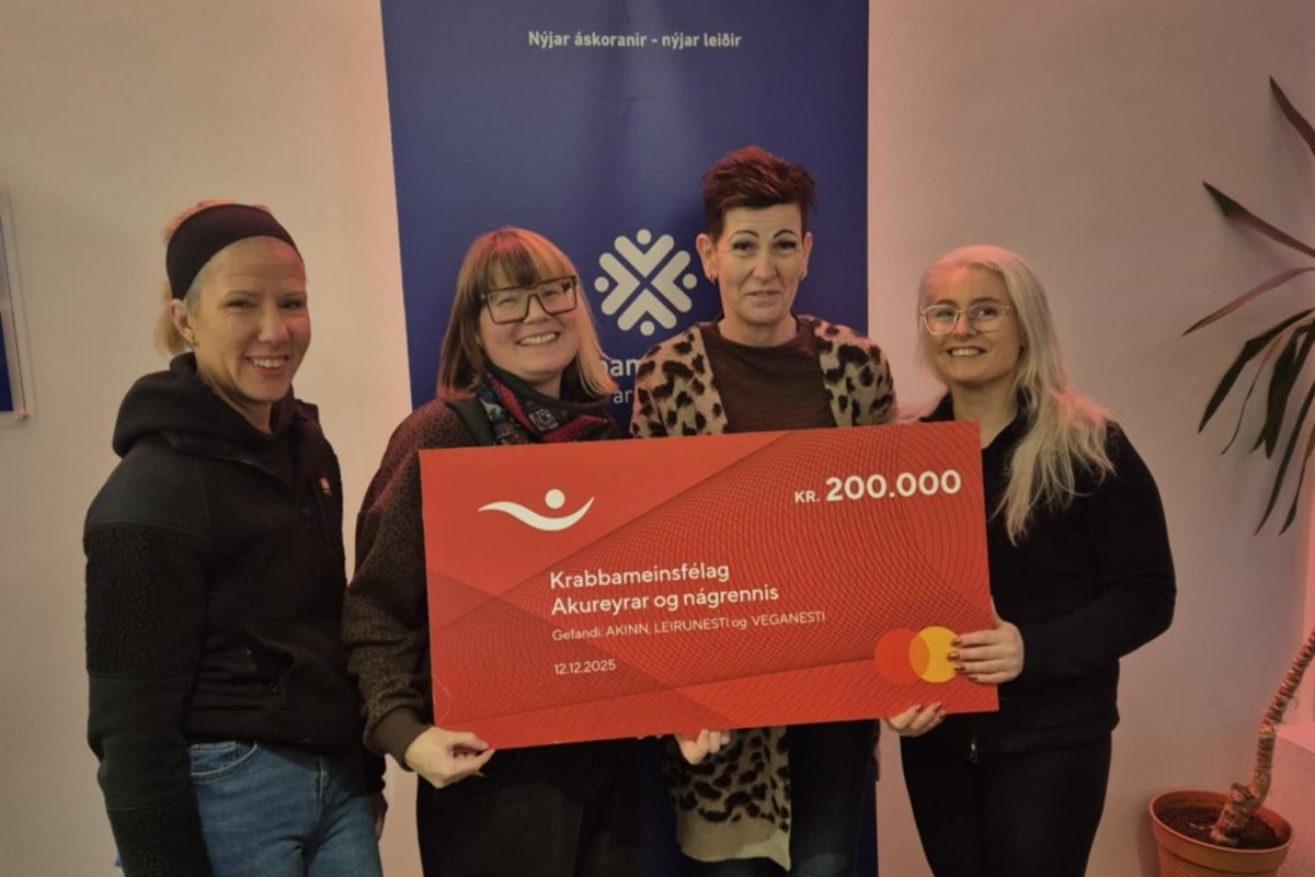 Á árlegri jólagleði starfsfólks AK-INN, Leirunestis og Veganestis var ákveðið að efna til söfnunar og láta ágóðann renna til góðs málefnis. Að þessu sinni varð Krabbameinsfélag Akureyrar og nágrennis fyrir valinu og söfnuðust alls 200.000 krónur, sem afhentar voru félaginu nýverið.