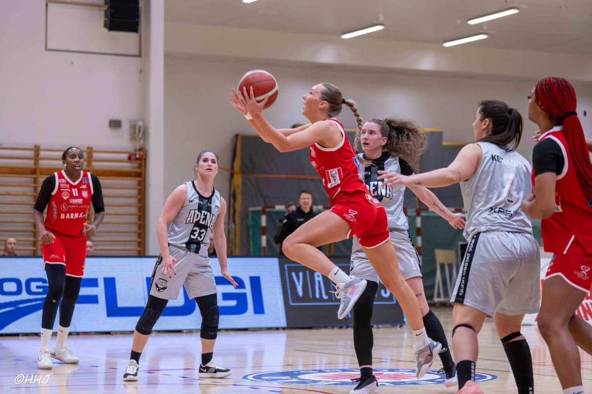 Emma Karólína Snæbjarnardóttir búin að snúa af sér varnarmenn Aþenu og sækir að körfunni. Mynd: Helgi Heiðar Jóhannesson.