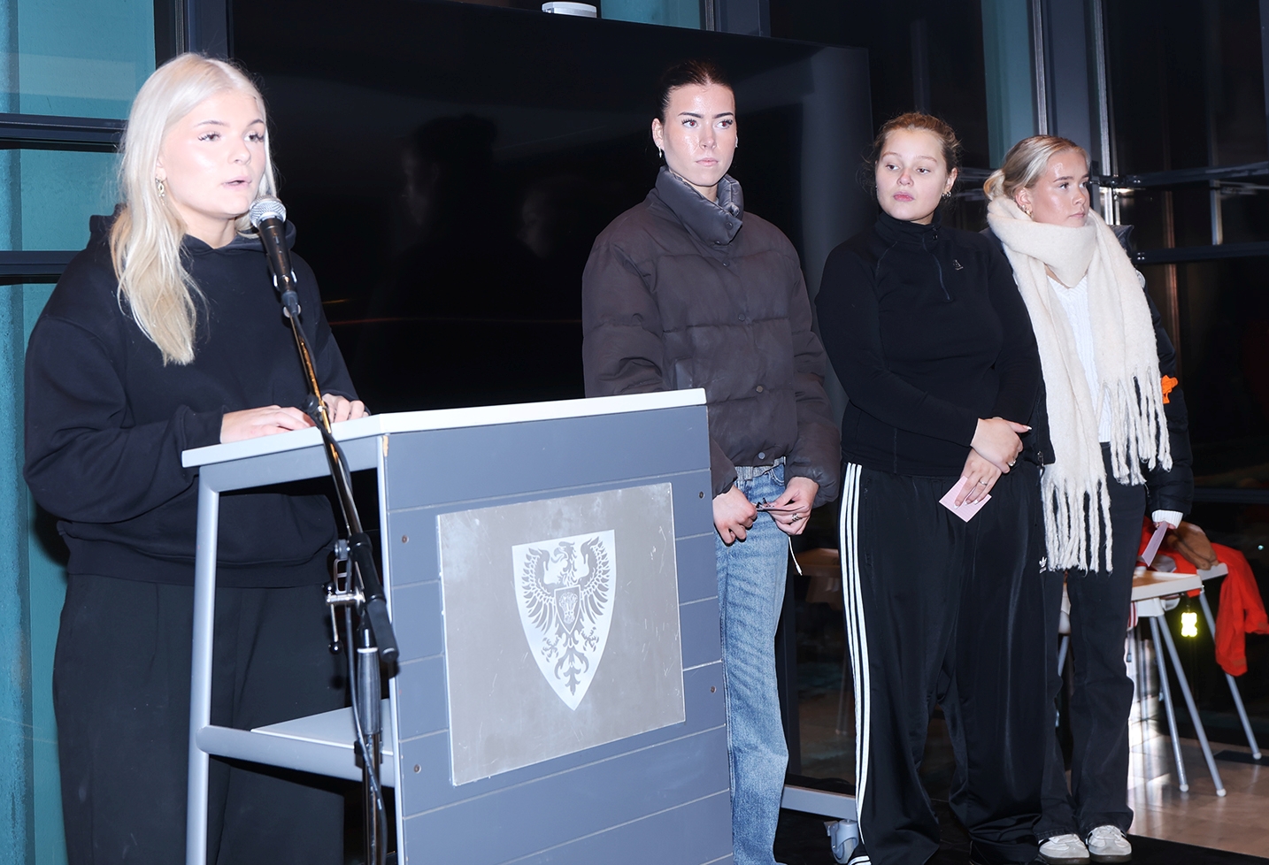 Aðalheiður Anna Ragnarsdóttir frá Femínistafélagi MA í ræðustól á Amtsbókasafninu að göngunni lokinni.
