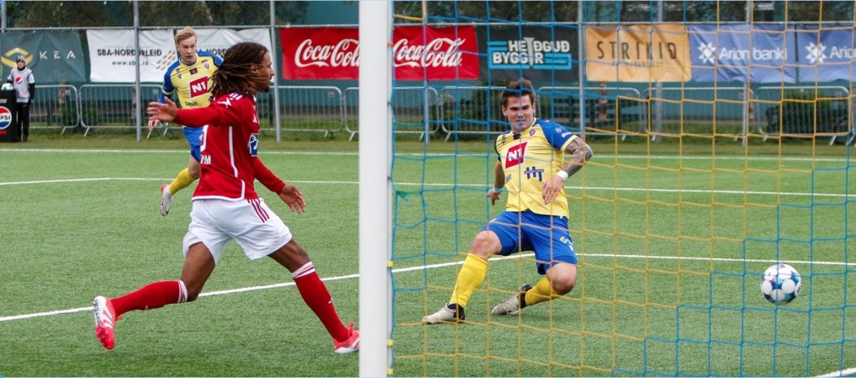 Viðar Örn Kjartansson skorar hér fyrir KA gegn Silkeborg í Evrópukeppninni í sumar. Þetta gæti hafa verið síðasta mark Viðars í KA-treyjunni. Mynd: Rakel Hinriksdóttir.