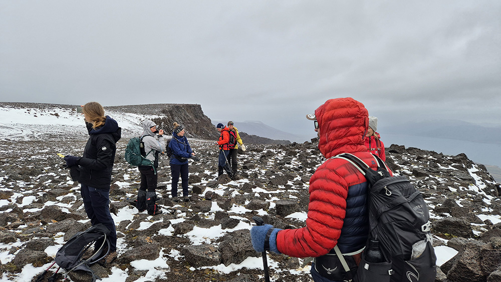 Sigurveig Árnadóttir, jarðfræðingur segir gönguhópi frá jarðfræði Villingadals.