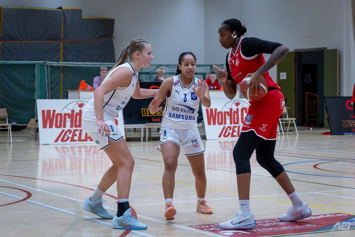 Hjörtfríður Óðinsdóttir fer vaxandi með hverjum leiknum, skoraði 21 stig í dag. Mynd: Guðjón Andri Gylfason.