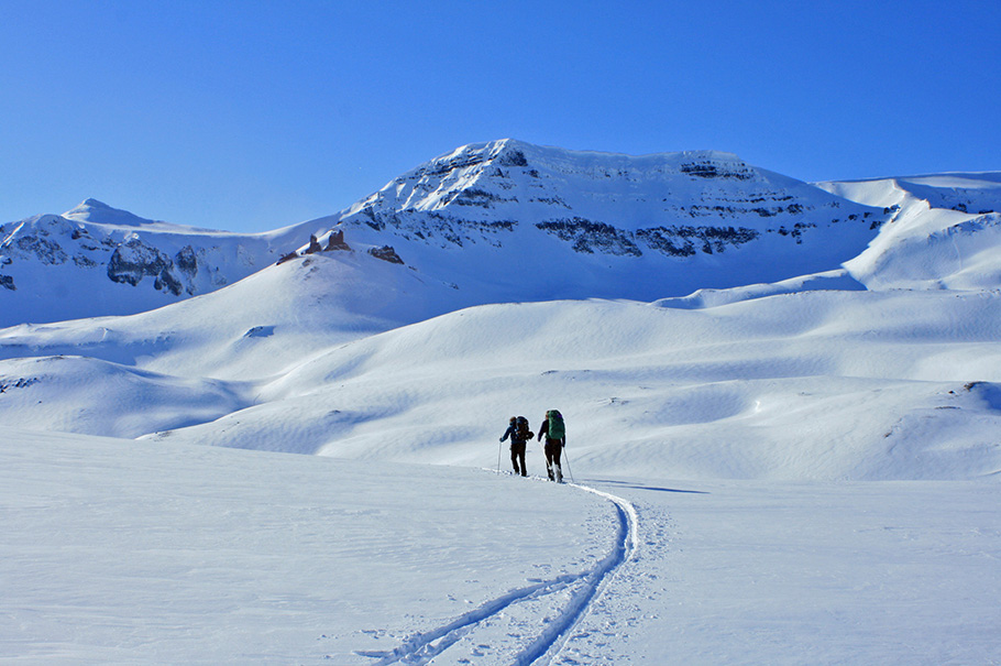 Skíðafólk á leið fram Glerárdal. Mynd: Ingvar Teitsson