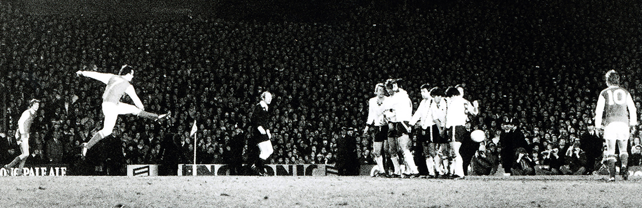 Liam Brady, leikmaður Arsenal, þrumar að marki Tottenham á Highury, heimavelli Arsenal þriðjudagskvöldið 10. apríl 1979. Mynd: Skapti Hallgrímsson