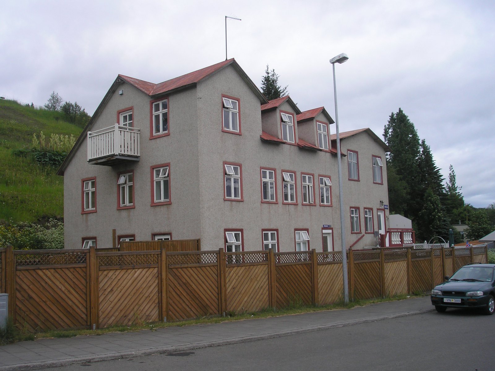 Yst við Aðalstræti, neðst í rótum brekkunnar miklu norður af Búðargili stendur reisulegt og stórbrotið hús.