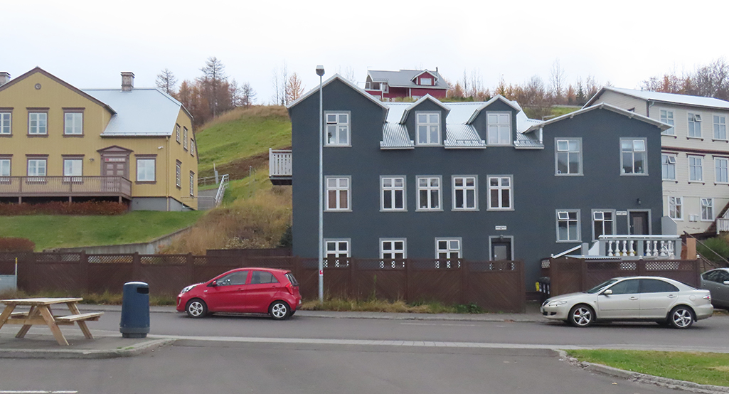 Meðfylgjandi myndir eru flestar teknar 15. október 2025, en myndin sem sýnir Aðalstræti 2 brúngráleitt að lit og áður en skipt var um þakjárn er tekin 19. júní árið 2014.