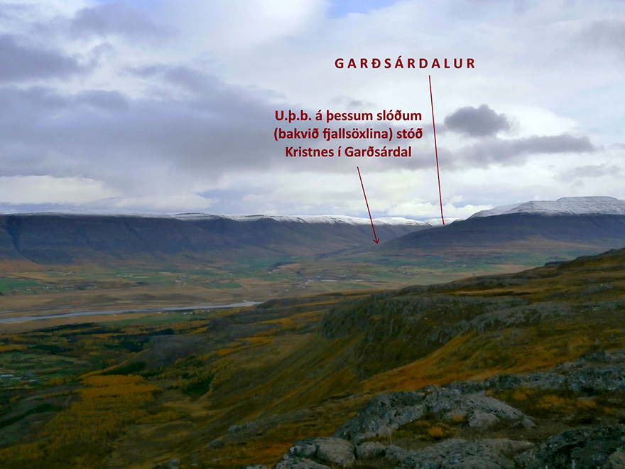 Vitaskuld er Kristnes, þar sem stendur Kristneshæli og byggðakjarninn kenndur við bæinn, vestanmegin Eyjafjarðar, undir Súlutindum og Kaupangssókn utarlega austanmegin, undir Kaupangssveitarfjalli, þar sem ógnarlangur Garðsárdalur opnast til suðurs. Og einmitt vestanmegin í Garðsárdal, liggur smá eyðijörð, sem ber nafnið Kristnes. Kotbýli, sem er rúma 5 kílómetra frá bænum Garðsá ( tæpa 18 kílómetra frá Akureyri) þetta var líkast til aðeins í byggð í rúma fjóra áratugi, frá því um 1840 til 1885. Nafngiftin mun tilkomin, af fornri selför Kristnesmanna úr Hrafnagilshreppi á þennan stað, á miðöldum (sbr. Stefán Aðalsteinsson 2019:1802). En af Garðsárdal og aftur á Grundargötu: Börn þeirra Sveins og Guðrúnar árið 1901 voru synirnir Guðbrandur Jóhann og Baldur. Auk þeirra átti faðir þeirra bræðra, Ólafur Jónsson einnig heima í sama íbúðarrými og Sveinn og Guðrún.