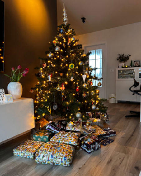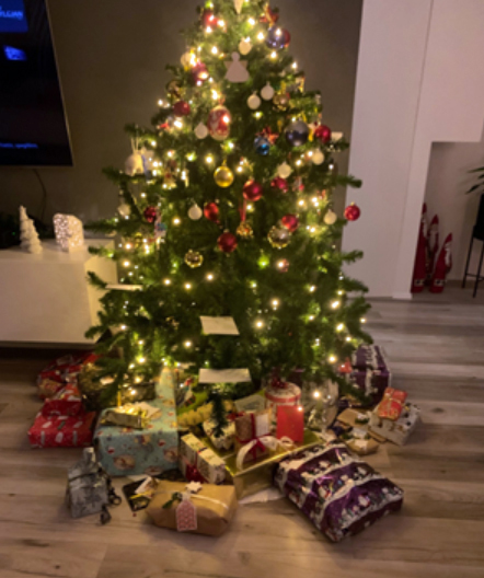 Síðan árið 2020 höfum við alltaf verið heima um jólin. Við borðum alltaf það sama á jólunum, það er aspassúpa í forrétt, kalkúnn í aðalrétt og allskyns góðgæti á meðan við opnum pakkana. Þegar við erum búin að borða þá fara mamma og pabbi að ganga frá eftir matinn á meðan förum við systkinin að ná í pakkana. Við erum með nokkrar reglur þegar við erum að ná í pakkana, það má ekki hlaupa, það má ekki kíkja á miðana á pökkunum og það má bara taka einn pakka í einu. Við erum með þessar reglur svo að við erum eins lengi og hægt er, því þá fá mamma og pabbi nægan tíma til að ganga frá eftir matinn. Þegar við erum búin að opna alla pakkana kemur systir mömmu og fjölskylda, bróðir mömmu og fjölskylda og amma, afi og Jón frændi öll til okkar að spjalla. Ég og frænka mín förum og sýnum hvor annari hvað við fengum í jólagjöf. Þegar allir eru farnir og nammið er búið í skálunum þá fer ég að hátta, tannbursta og sofa.