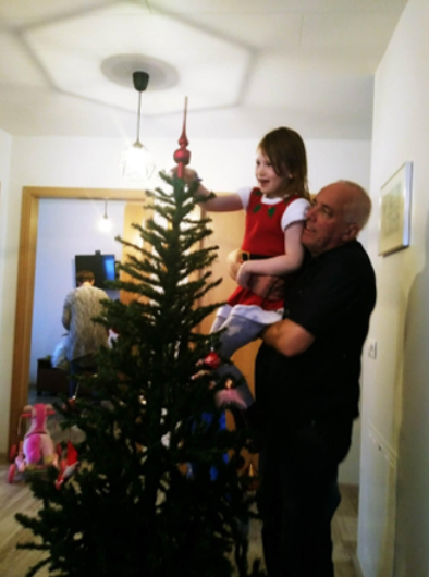 Um jólin erum við mikið með móður fjölskyldunni minni. Fyrir jól hittumst við fjölskyldan hjá ömmu og afa og gerum laufabrauð sem amma felur svo því annars borða það allir. Á Þorláksmessu förum við síðan til ömmu og afa og skreytum tréð og þá megum við fá laufabrauðið heim með okkur. Aðfangadagur er farið snemma til ömmu og afa því jólasveinarnir koma með gjafir og söng. Síðan er borðað möndlugraut og í eftirrétt er grjónakakan hans afa sem er ættar leyndarmál fjölskyldunnar frá lang lang ömmu minni. Það er hægt að borða hana með sultu og rjóma. Svo er farið í pakkaleik sem er rosa skemmtilegt og keppnisfullt. Eftir pakkaleikinn er byrjað að elda og slakað á. Svo um fjögur leitið er farið upp í kirkjugarð og sett kerti og blóm hjá langömmu og afa. Svo er farið heim í spariföt og sest við borðið og hlustað á messuna. Það er alltaf hamborgarhryggur, brúnaðar kartöflur, brún sósa og grænar eða gular baunir. Eftir matinn erum við með reglu að það þarf að ganga frá eldhúsinu og matnum áður en er farið í pakkana. Eftir það er farið inn í stofu og afi les oftast á pakkana og það má enginn kíkja á miðana nema hann. Um kvöldið er slakað á og spilað, spjalað eða bara horft á jólamyndir langt fram eftir nóttu og flestir fara heim en sumir gista hjá ömmu og afa.