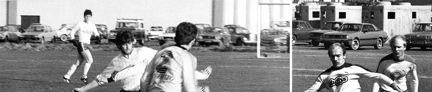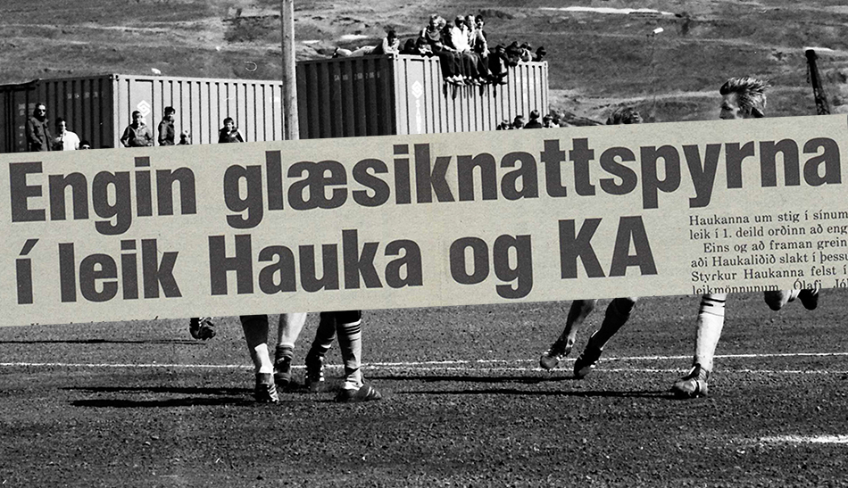 Ég man fyrst eftir að hafa sótt kappleiki á Sana-vellinum seint í sjöunni. Það voru aðallega vormót og æfingaleikir en líka Íslandsmótsleikir, ef enginn annar völlur var í boði. Mér er sérstaklega minnisstæður leikur KA og Hauka í fyrstu umferð Íslandsmótsins vorið 1979. Tvennt kemur þar til.