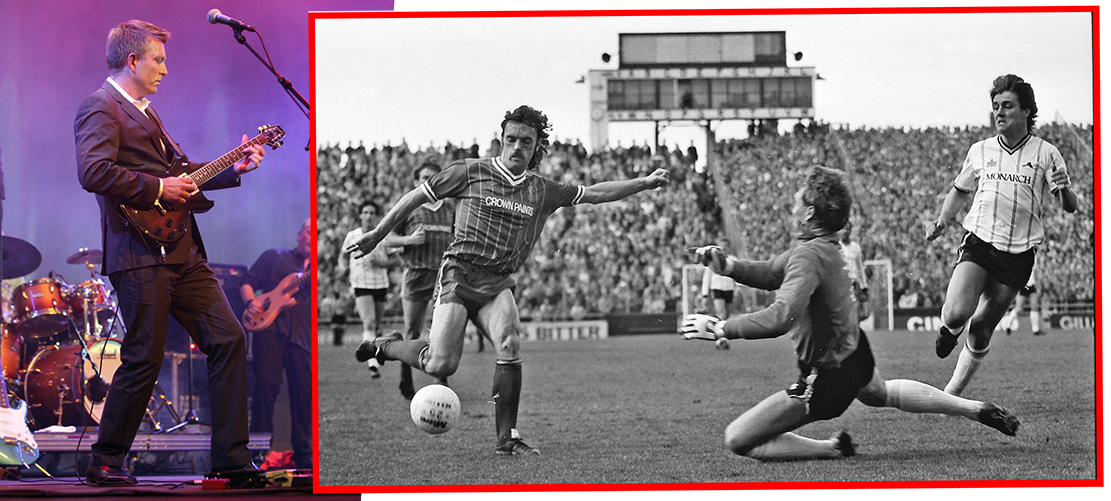 Þór Freysson lék firnavel á gítar með Baraflokknum og John Wark lék oft mjög vel með Liverpool. Aðeins annar þeirra skartaði þó „mottu“ – Wark, sem hér er í dauðafæri gegn Notts County 12. maí 1984. Leikurinn var markalaus en stigið sem Liverpool nældi í þann dag á Meadow Lane í Nottingham tryggði félaginu Englandsmeistaratitilinn. Myndir: Skapti Hallgrímsson