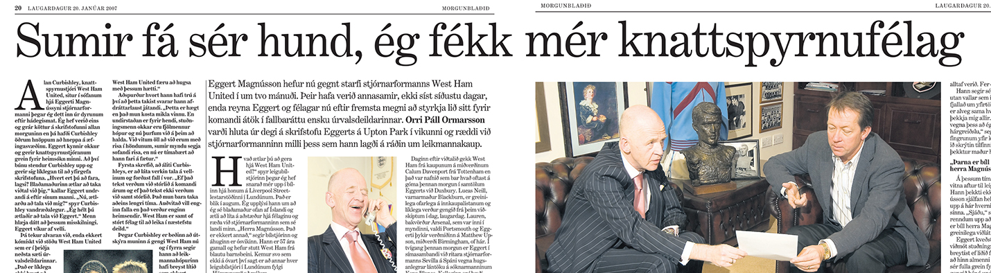 Löngu seinna átti ég eftir að gista á hótelinu á Upton gamla Park og eyða lunganum úr degi á skrifstofu þáverandi stjórnarformanns West Ham, Eggerts Magnússonar. Ógleymanleg upplifun fyrir blaðamann með boltablæti.