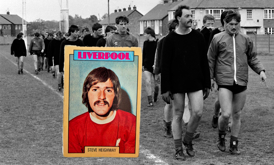 MAÍ 1984 – Fleiri „mottumenn“, fremstir í flokki markvörðurinn Bruce Grobbelaar og framherjinn David Hodgson á Melwood, þáverandi æfingasvæði Liverpool, í maí 1984. Steve Heighway, á innfelldu myndinni, var þá hættur að leika með Liverpool en hann skartaði einn þekktustu mottu í herbúðum félagsins á árum áður. Myndir: Skapti Hallgrímsson