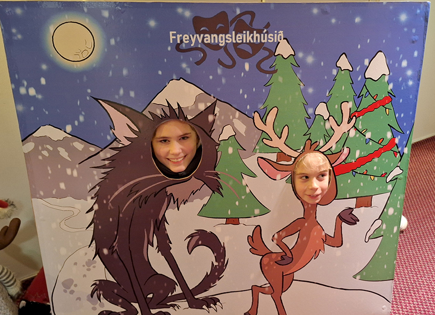 Leikarar í sýningunni: Birgitta Brynjarsdóttir (hreindýrið Helgi) og Hallur Örn Guðjónsson (Jólakötturinn).