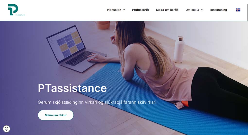 Heimasíða PTassistance. Hægt er að fara á síðuna með því að smella á myndina.