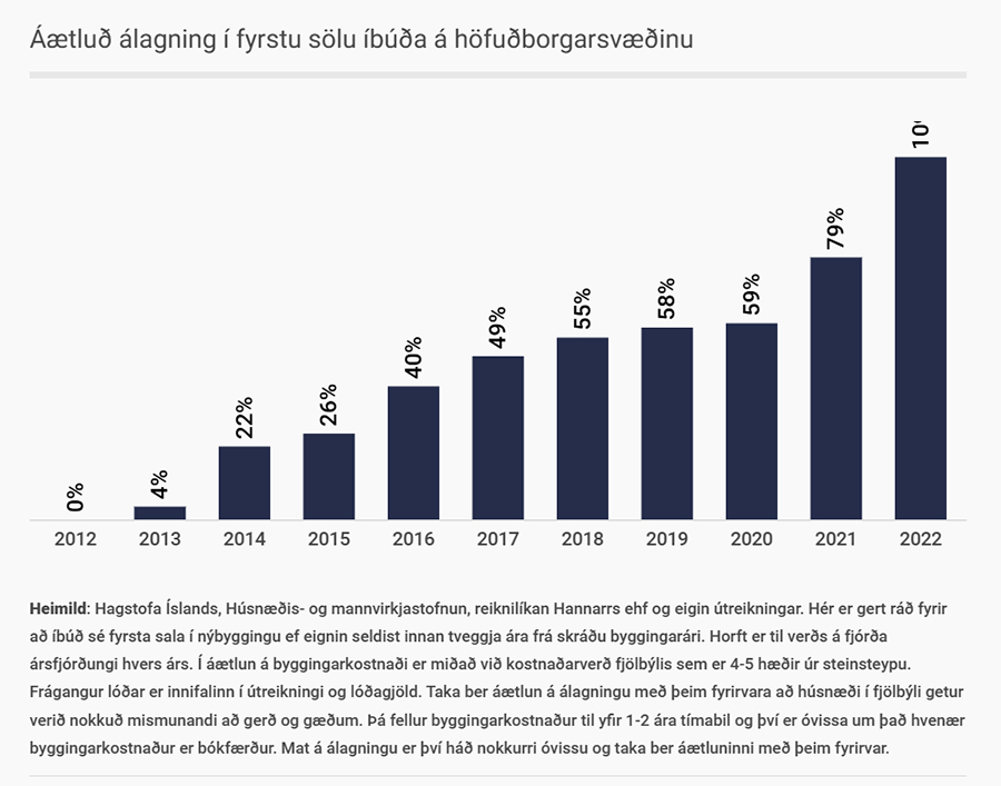 BHM birti greiningu á árinu 2023 – sem er aðgengileg á heimasíðu samtakanna. Þar er að finna áætlun á þróun álagningar/framlegðar verktaka í fyrstu sölu nýrra eigna - 2012 til 2022. Yfirskrift greiningarinnar er að „verktakar tvöfaldi hverja krónu“ sem er virkilega lýsandi fyrir þá þróun sem teiknuð er upp.