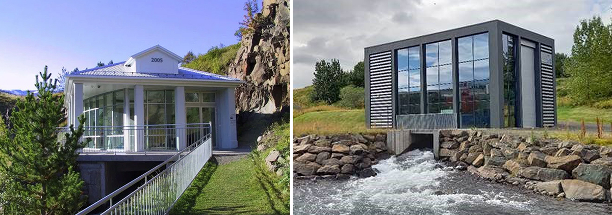Djúpadalsvirkjun, til vinstri, og Glerárvirkjun. Myndir: Fallorka.