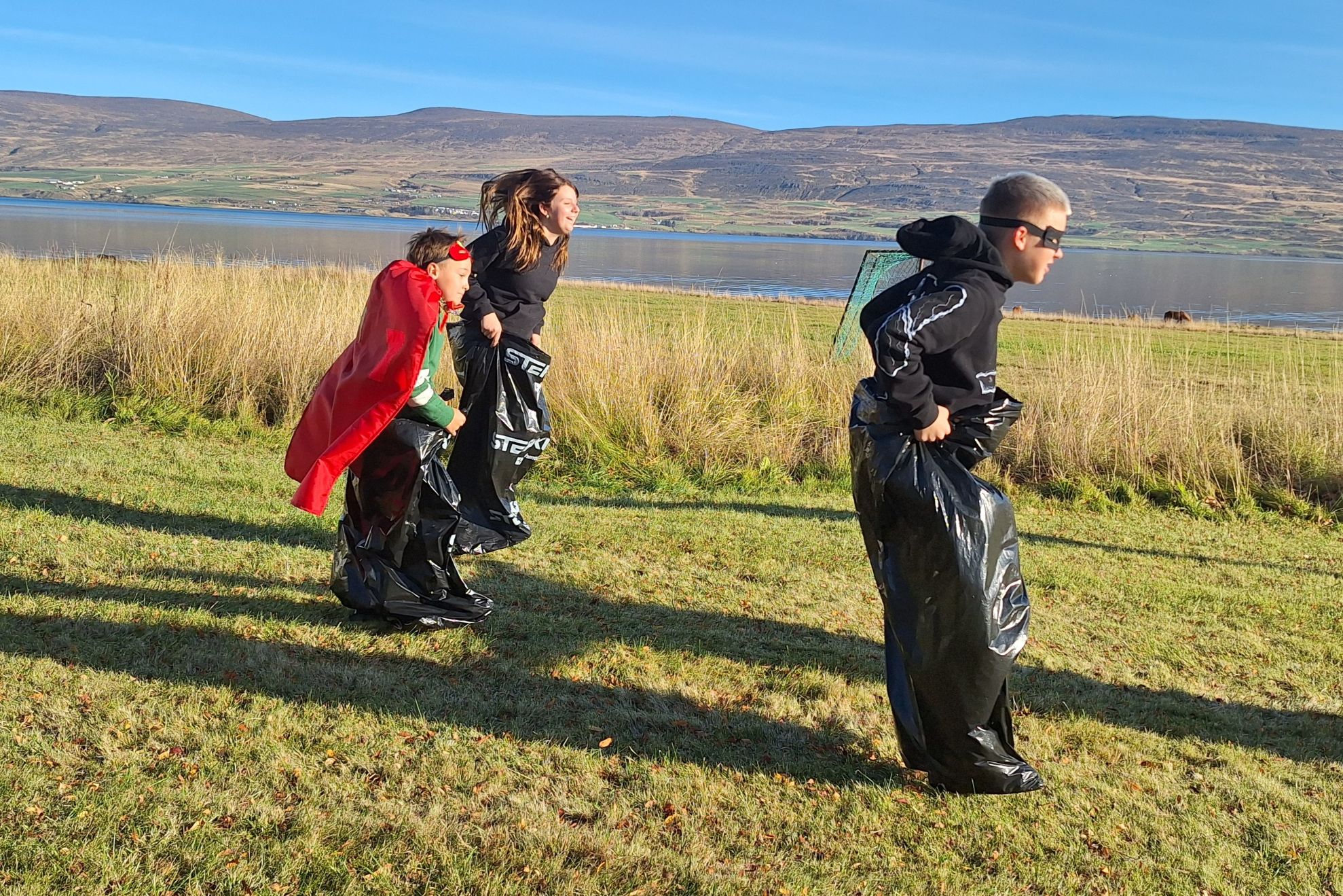 Meðal keppnisgreina á Hetjuleikunum var pokahlaup.