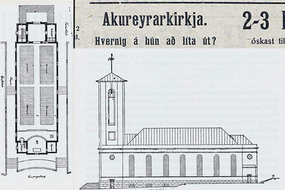 Akureyrarkirkja Árna varð ekki meira en teikning